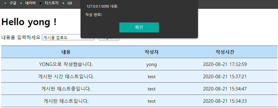 | 파이썬 플라스크(Flask) 로컬 서버에 파일 업로드하고 출력하기 (7) | 2020.09.01 |