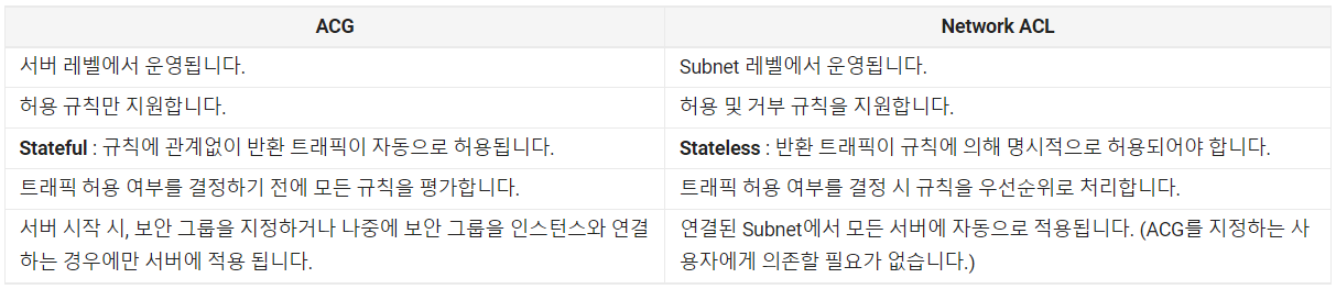 NACL과 ACG는 둘 다 기본적으로 Inbound, Outbound 트래픽을 제어한다.
