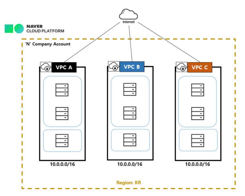 이때 각 VPC들은 완전히 독립된 것처럼 동작한다.