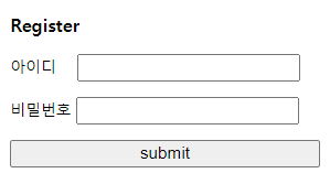 register에서는 회원가입 작업을 수행하며, 입력한 값을 DB에 저장한다. (아직 중복검사는 구현하지 않았음)